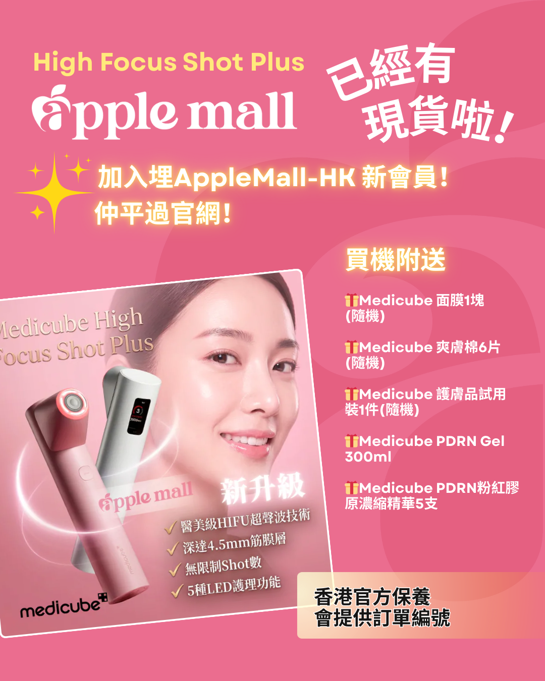 ![]() | 睇完介紹,係咪已經鎖定目標?而在 Apple Mall 入手,比起官網更有優勢! 🔥 重點推介:High Focus Shot Plus 現貨發售中! 價錢更抵: 加入 AppleMall-HK 新會員,價錢隨時平過官網! 香港官方保養: 貨源有保證,我們會提供訂單編號,享有官方保養服務,買得安心。 超級贈品包 (買機即送): 🎁 Medicube 面膜 1 塊 (隨機) 🎁 Medicube 爽膚棉 6 片 (隨機) 🎁 Medicube 護膚品試用裝 1 件 (隨機) 🎁 Medicube PDRN Gel 300ml (大容量!) 🎁 Medicube PDRN 粉紅膠原濃縮精華 5 支 (贈品數量有限,送完即止,詳情請參閱產品頁面) |