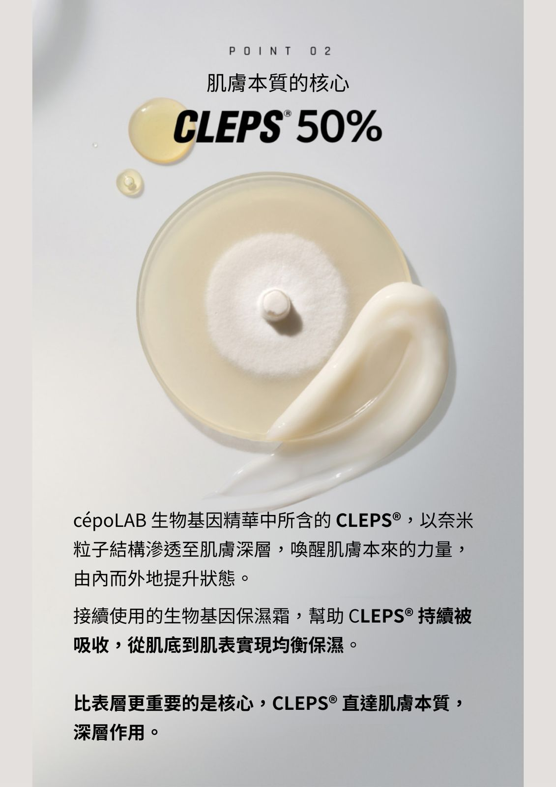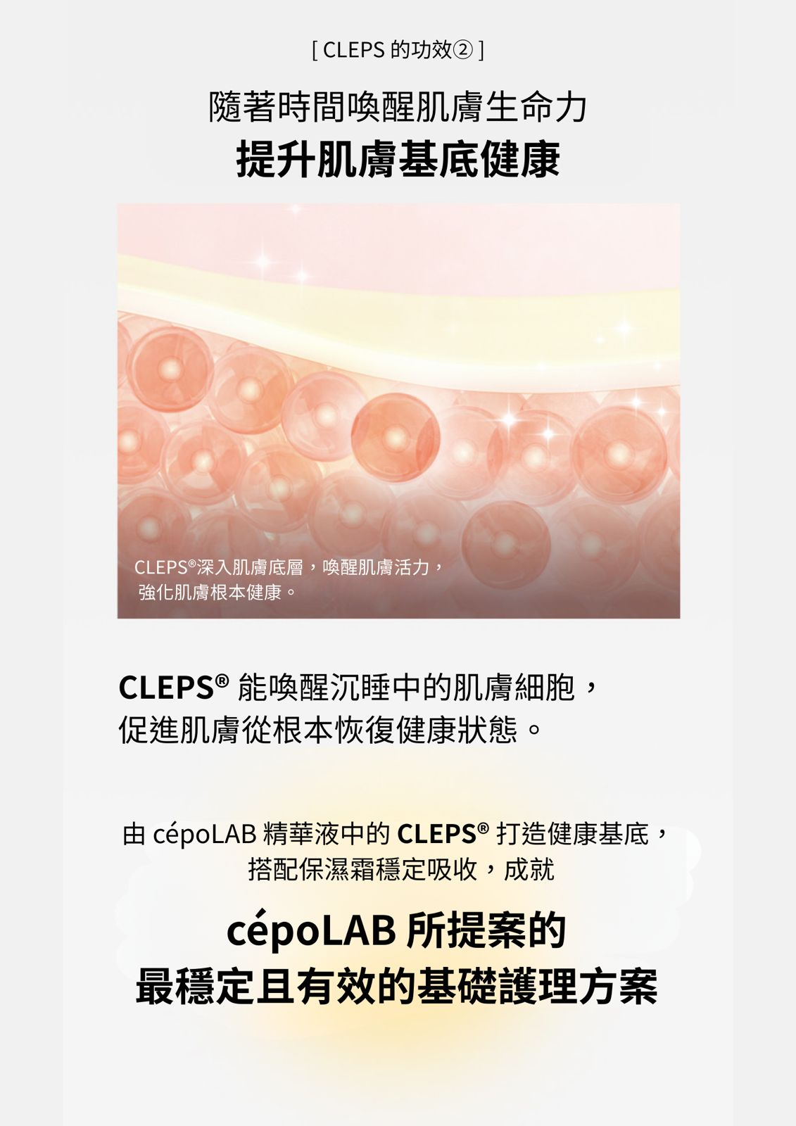 比表層更重要的是核心,CLEPS®️直達肌膚本質,深層作用。