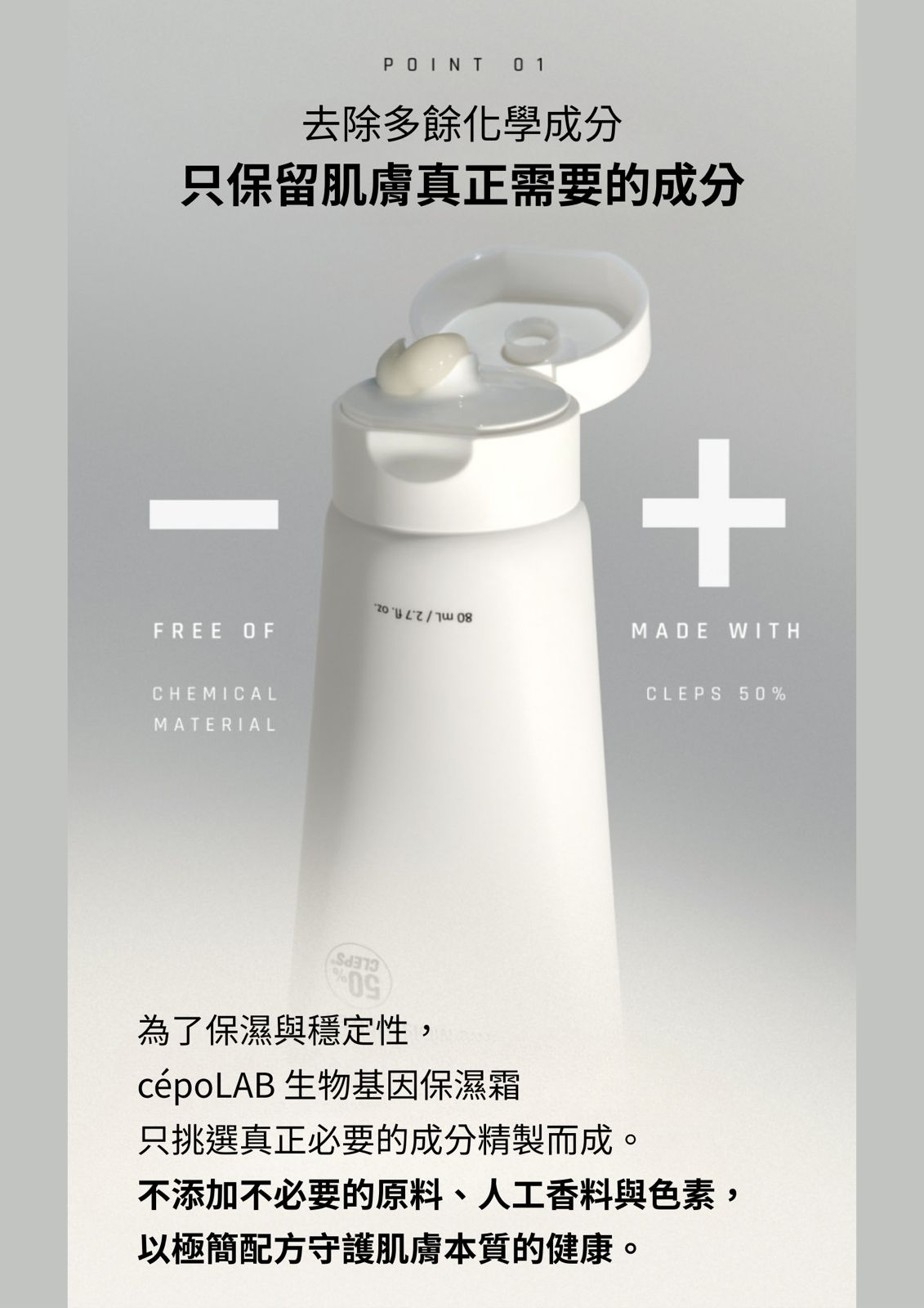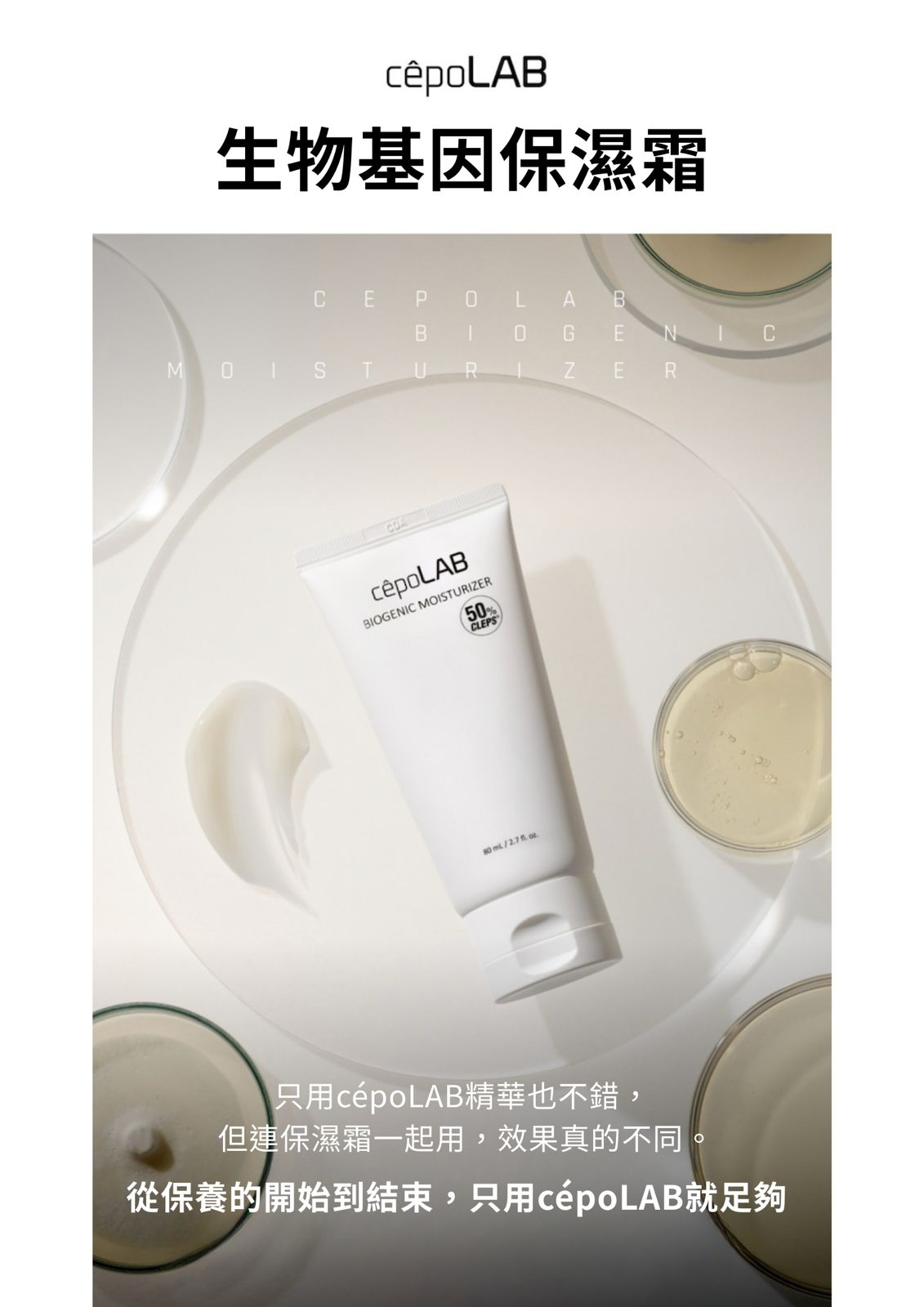 接續使用的生物基因保濕霜,幫助CLEPS®️持續被吸收,從肌底到肌表實現均衡保濕。
