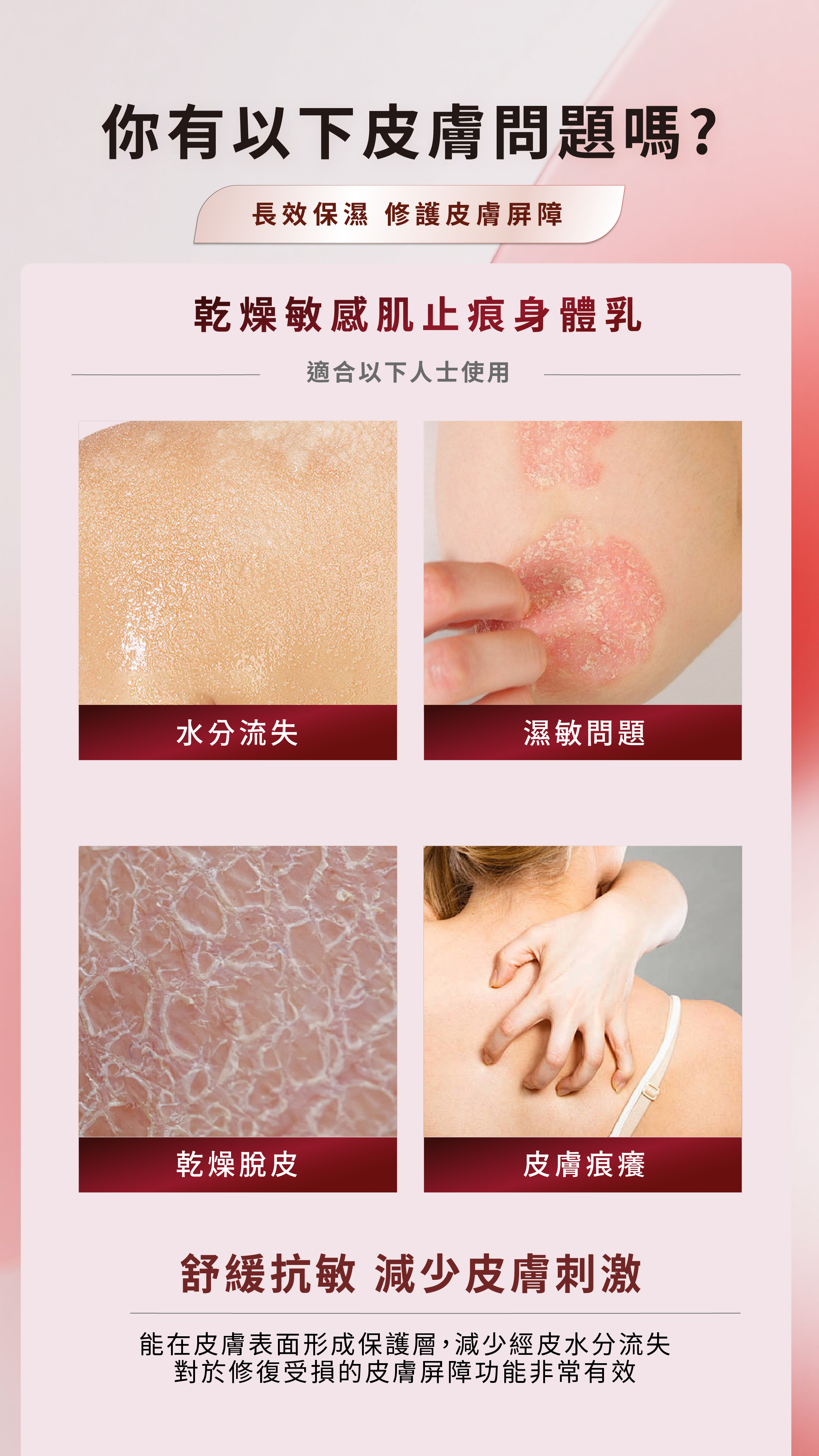 皮膚敏感,容易因乾燥或外界刺激而產生瘙癢感的人士。