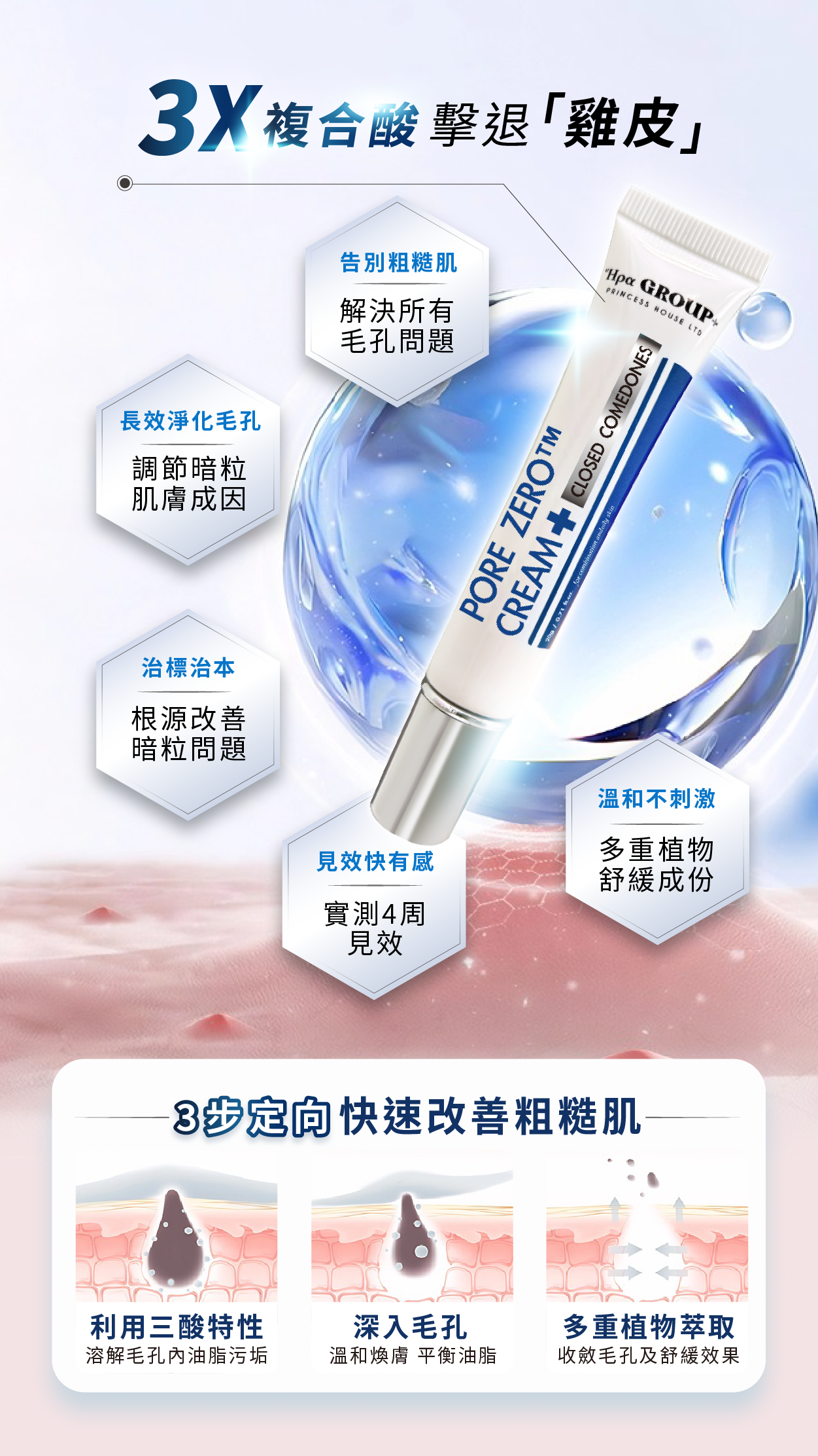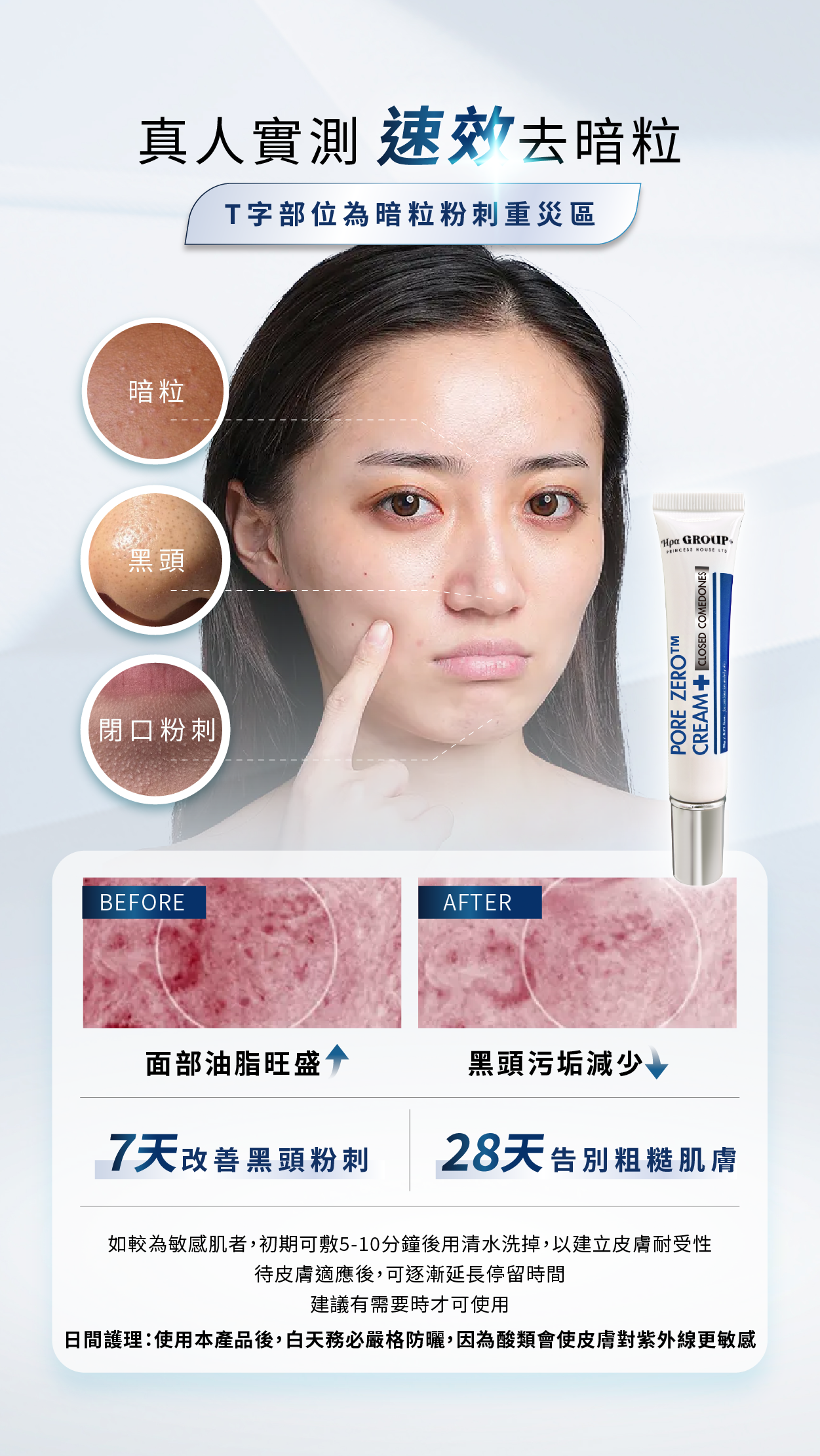 清除黑頭、白頭及閉口粉刺