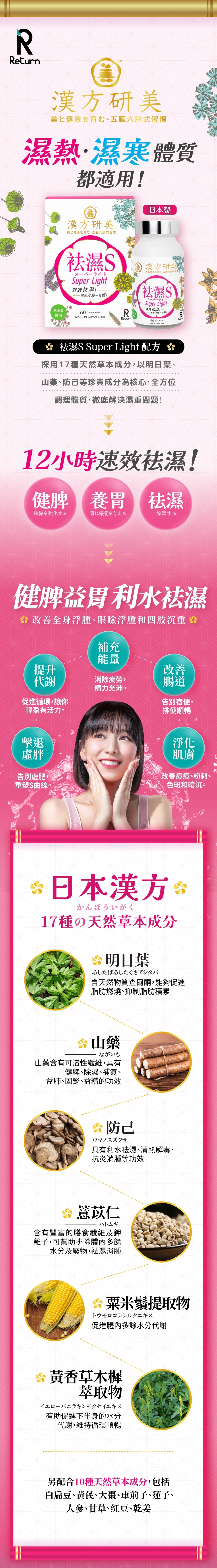 改善面部、腹部及四肢脹滿、長期浮腫
